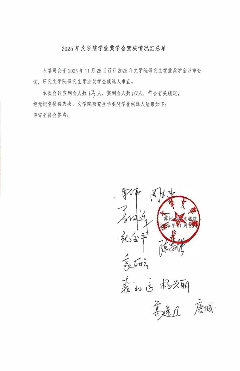 根据《关于2025年苏州大学研究生学业奖学金评定工作的通知》,按照相关规定,在坚持公开、公平、公正的原则上进行了评审,现将评审结果予以公示,具体名单见附件,公示期为2025年11月28日至2025年12月5日。