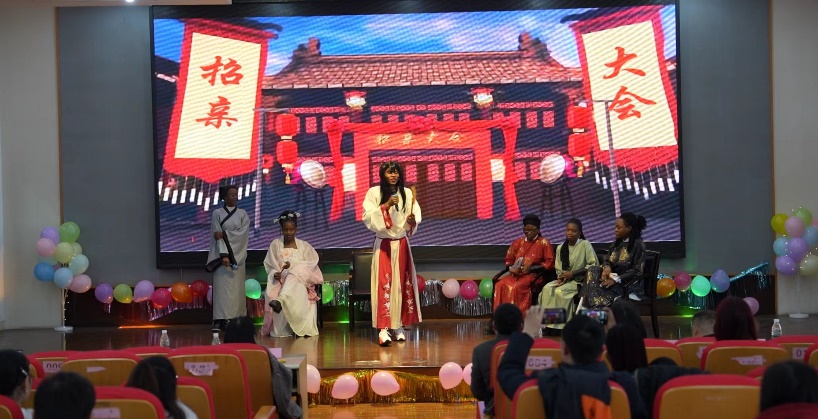 灯光亮起,拉各斯班的留学生们穿着长衫拿着折扇,以小品的形式表演了大家熟知的《四大才子》,给观众带来了无数欢乐。接着上演的情景剧《网络情》,通过讲述手机给人们带来的帮助,细腻勾勒出数字时代的便利生活。两种表演透过生活化的叙事,让不同文化背景的观众都能在会心一笑中触摸到情感共鸣。